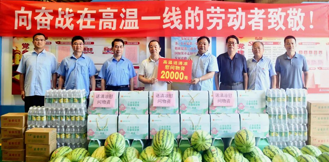 湖南省有色冶金機械建材工會主任曹源忠為湘電一線職工“送清涼”